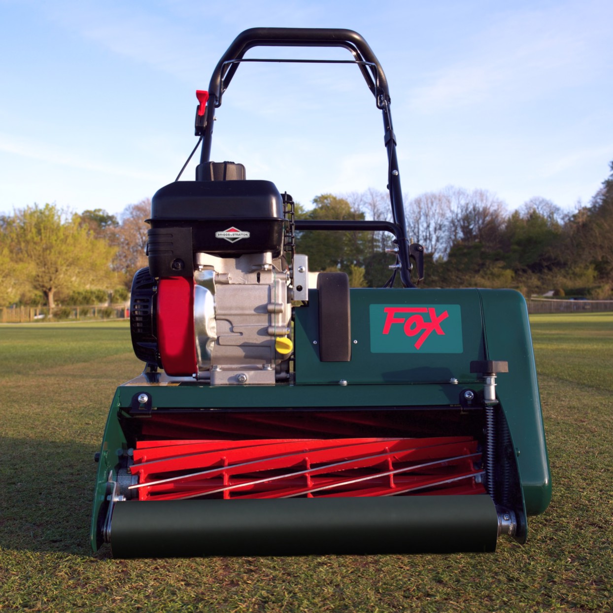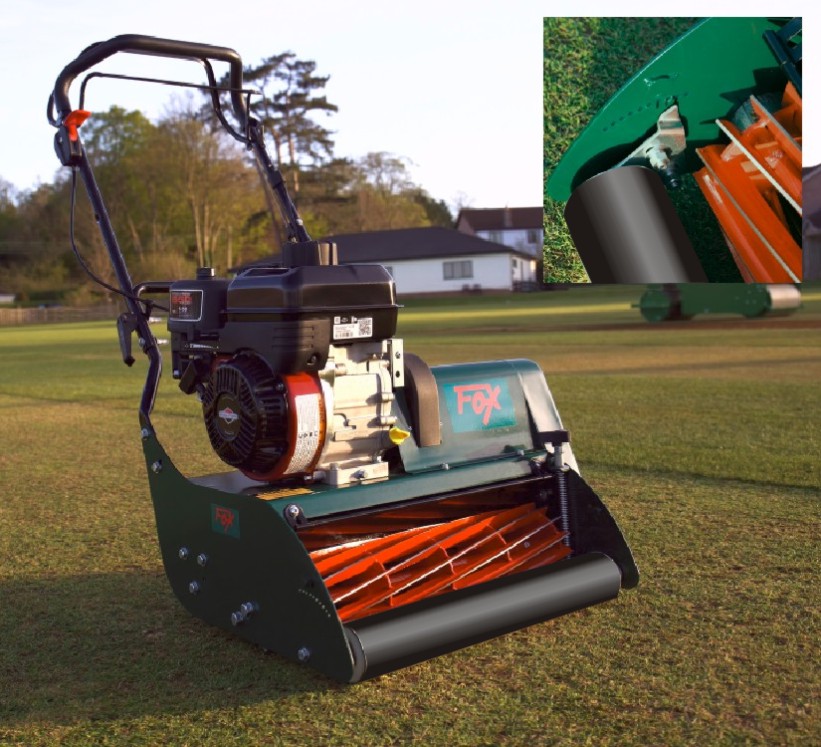 A 14 bladed fine turf mower complimented with a choice of bottom blades providing the ultimate cut, with a reliable Briggs & Stratton engine. A first with a new unique front non-stick roller. A simple yet secure height adjustment with chassis indicator for returning with pin point accuracy. An enhanced particularly fine adjustment allowing a fraction of movement to configure the cylinder and bottom blade, based on a tried and tested mechanism that has been used for decades. All metal cogs, chain driven and particularly smooth throttle control. Gearing to provide the correct cylinder rpm with further accurate gearing to assure the correct forward speed. Weighted (85kg approx) and balanced for easy manoeuverability and operator comfort.